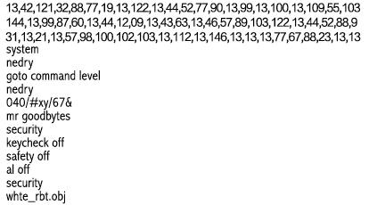 一开始的数字代表赖德里在控制板上按的那些键的美国资讯交换标准译码。这些数字表明他还在标准使用者界面,就像任何普通的电脑使用者一样。由此可见,开始的时候,赖德里只不过是随便看看,设计这个系统的程式设计员一般不会这样做的。